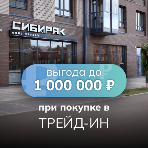 Увеличьте площадь своей квартиры с помощью программы трейд-ин от «Сибиряка». Мы обменяем вашу квартиру на новую без необходимости перепродажи и подарим дополнительную скидку 5% на покупку квартиры в любом из наших жилых комплексов. Максимальная выгода по программе составит до 1 000 000 рублей.