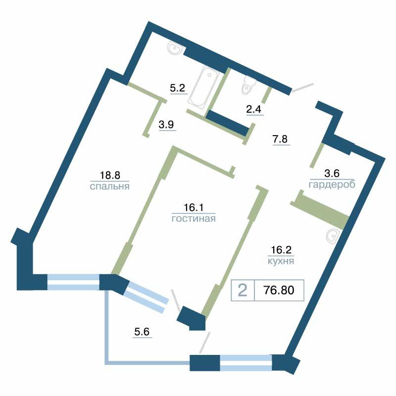 Квартира 76,80 м²