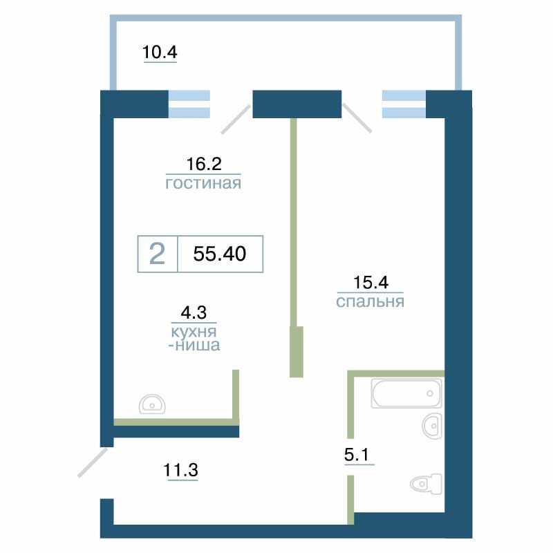 Квартира 55,40 м²