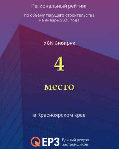 «Сибиряк» — ТОП-4 застройщиков Красноярского края по объему строительства