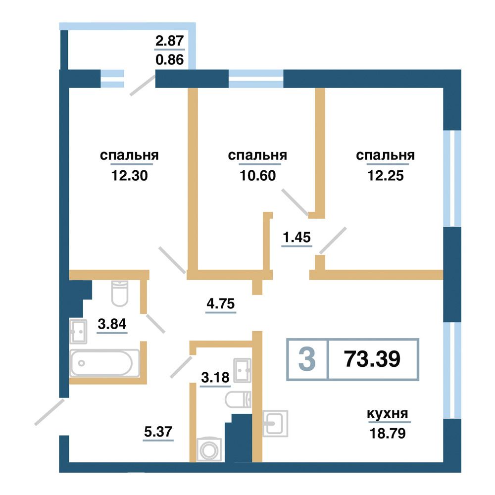 Квартира 73,39 м²