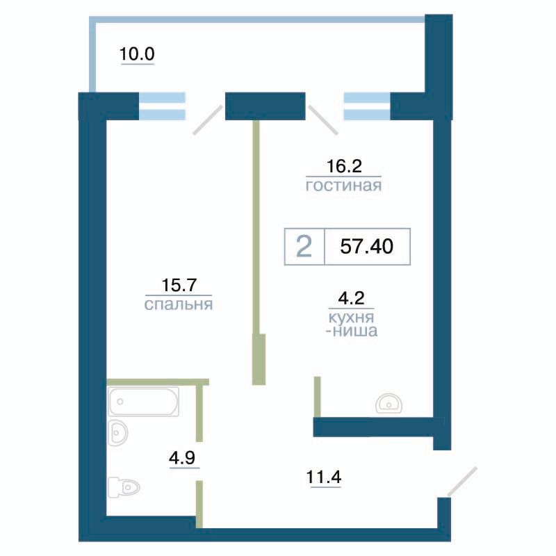 Квартира 57,40 м²