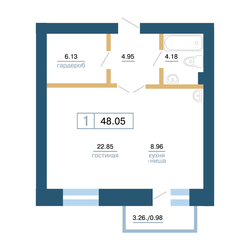 Квартира 48,09 м²