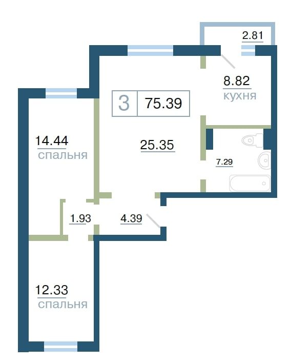 Квартира 75,39 м²